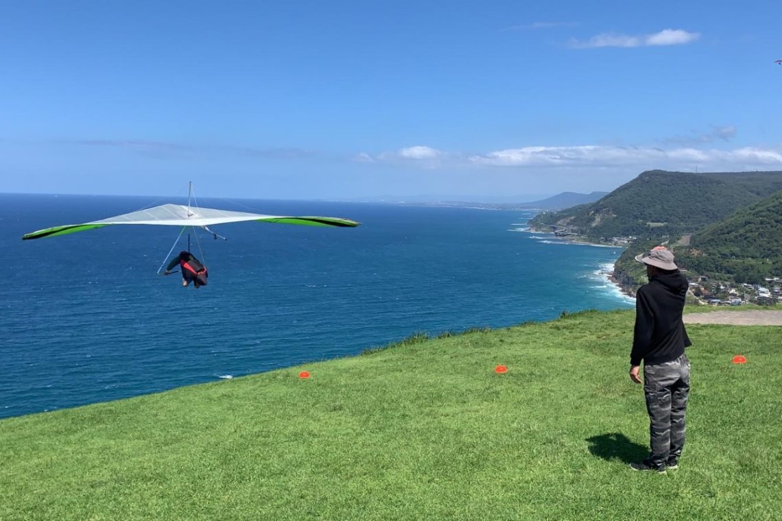 The views of Grand Pacific Drive, the Royal National Park, and the ocean and the beach below are incredible, if not also daunting when running off the cliff. It is about an hour south of Sydney, Australia, so just a long enough drive for the anxiety to build up nicely while you make nervous small talk all the way. The journey is simple: you run off the cliff out to the ocean, you are 180 m high (590ft), you then fly around and land on the beach to your right below. Sounds simple.